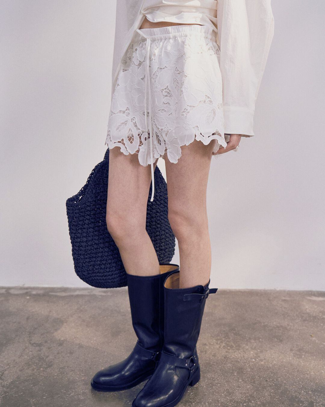 華やかさと繊細さを兼ね備えたオーバーレースデザインのショートパンツ。