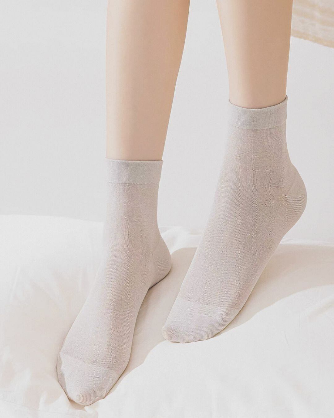 美しい光沢感となめらかな肌ざわりの無地シルクソックス。やさしくなめらかな肌ざわりで、吸放湿性にも優れているため、春夏は涼しく、秋冬は暖かく過ごせます。無地のシルクブレンド糸を使用し、裏側のボディ部分にはストレッチ糸やゴム糸を使用しないゆったりとしたフィット。肌にいちばん近いものだからこそ、毎日安心してお使いいただけます。
