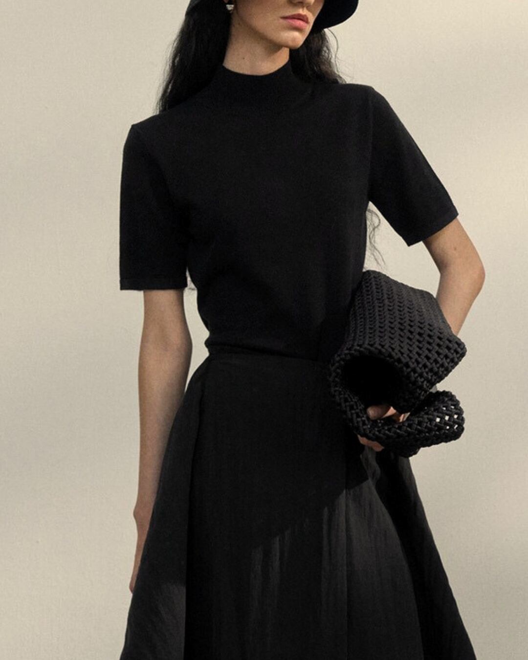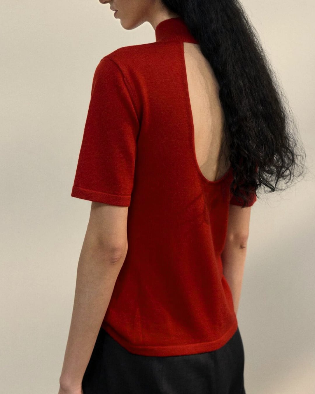 ミニマルなハイネック仕様で、上品な雰囲気を演出しながらも、バックデザインで抜け感をプラス。柔らかなニット素材で、シーズンを問わず快適な着心地を実現。背中の開きが程よい高さに設計されているため、インナーを気にせずにデイリーにも着用可能です。