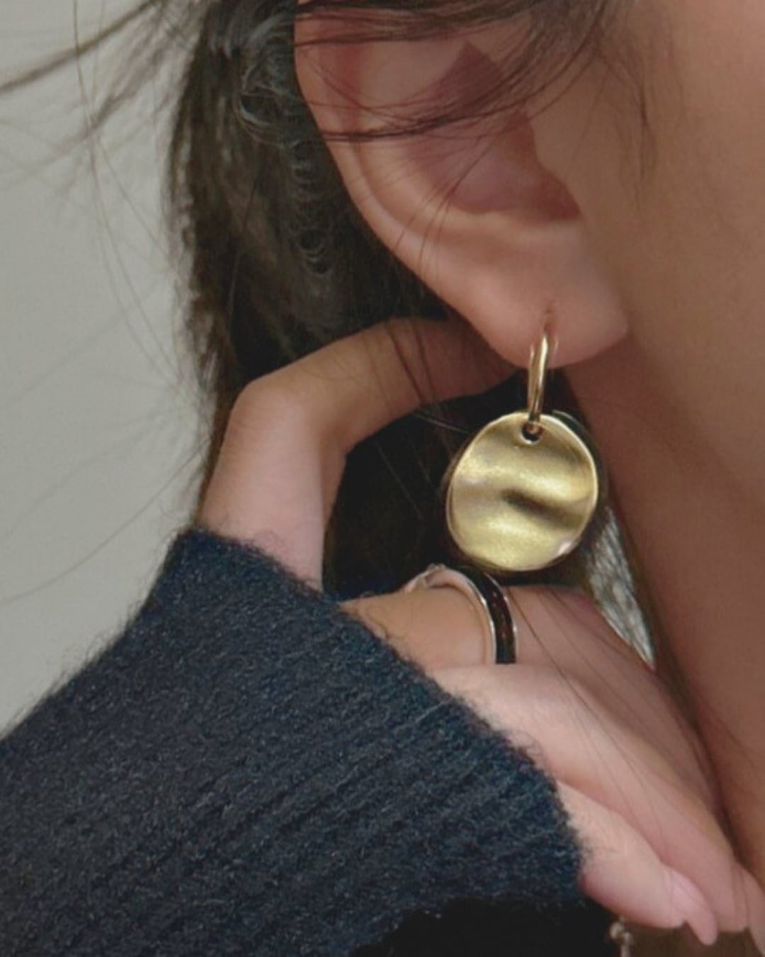 シルバーのうねりを効かせた小ぶりなフープドロップピアス。