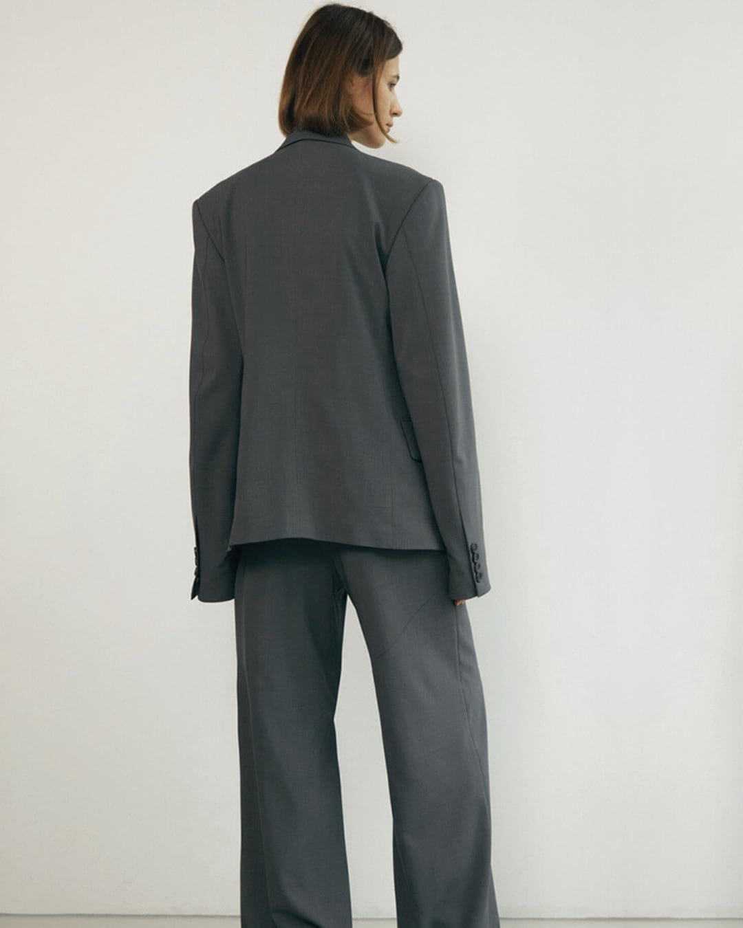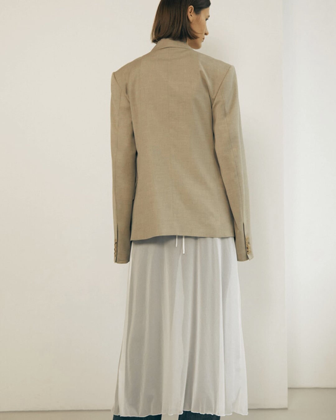シングルブレストジャケットです。大きめのサイズ設定により、体にフィットさせることなく、ゆとりのある自然なフォルムを表現しています。クラシックなデザインと機能性を備え、シンプルなスタイリングに合わせるだけでマニッシュな印象を演出します。