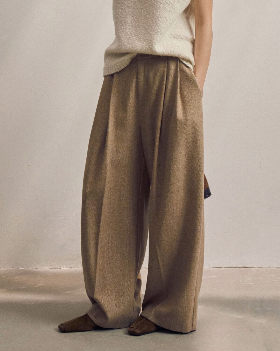 Herringbone Tuck Wide Trousers