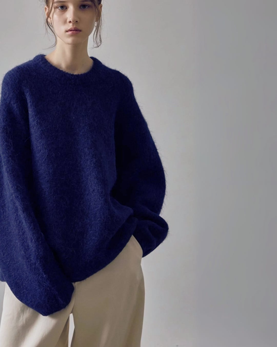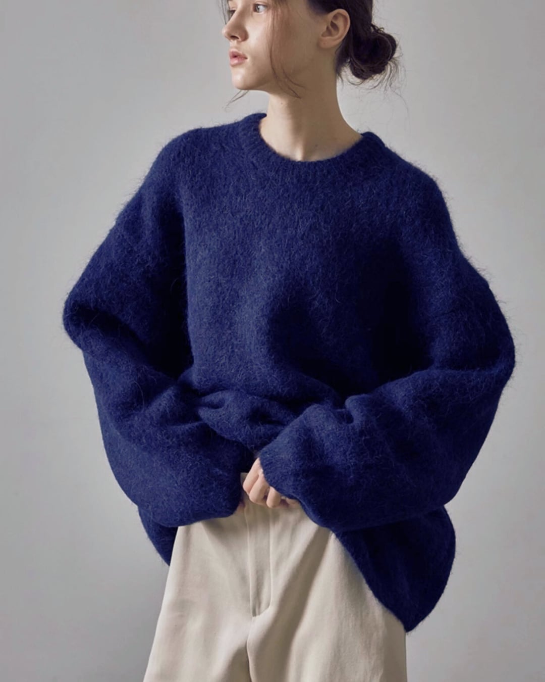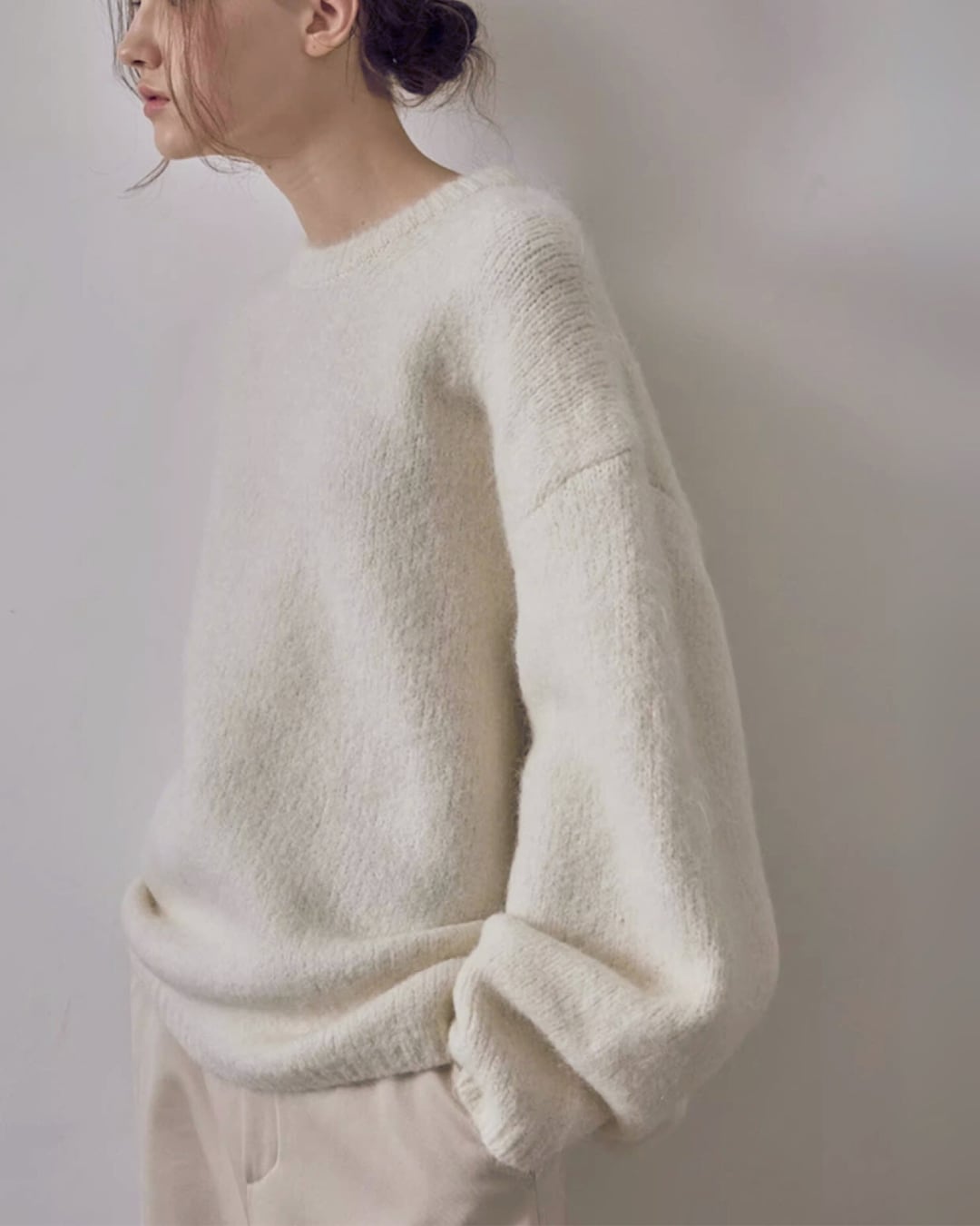 ふんわりとしたウール素材で編み上げたニットプルオーバー。