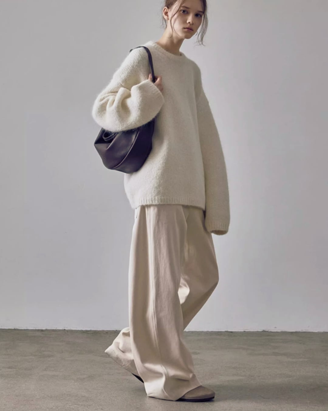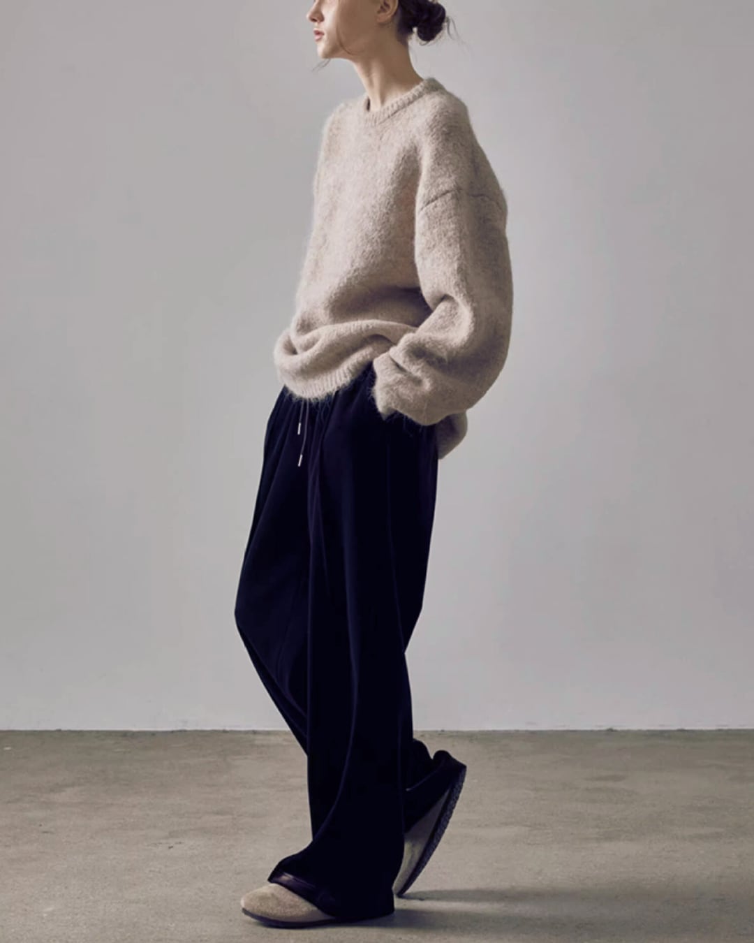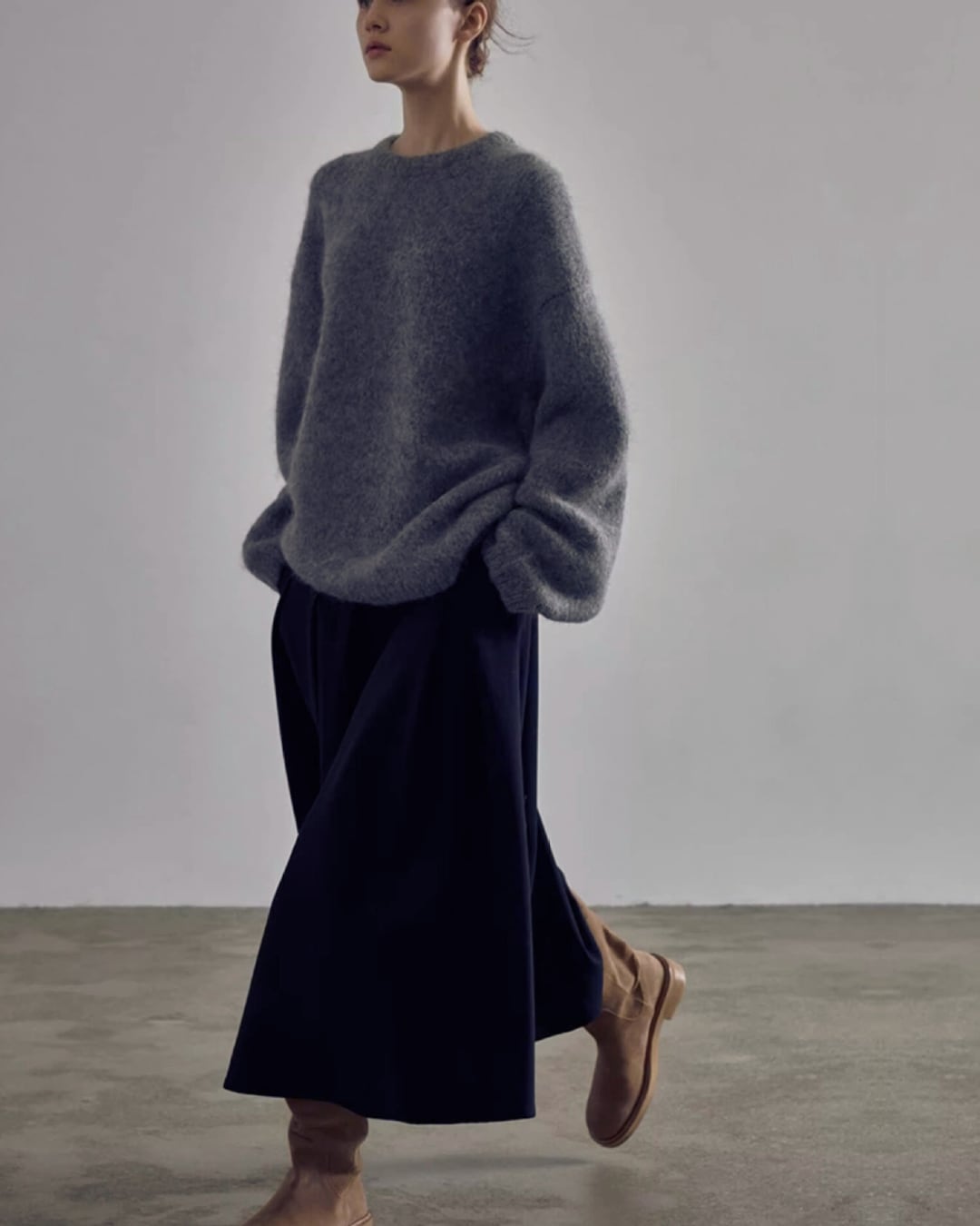 ふんわりとしたウール素材で編み上げたニットプルオーバー。