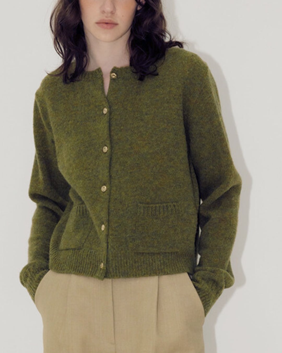 カーディガンとしてはもちろん、トップスとしても着られるマルチなニットです。