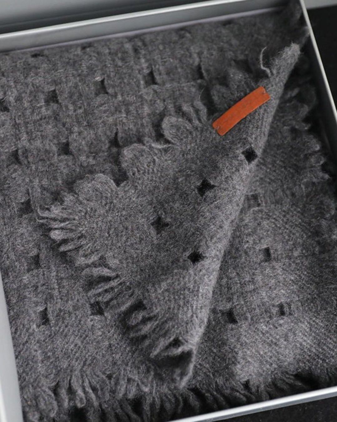 説明:カシミヤ100%のオープンニットストール。