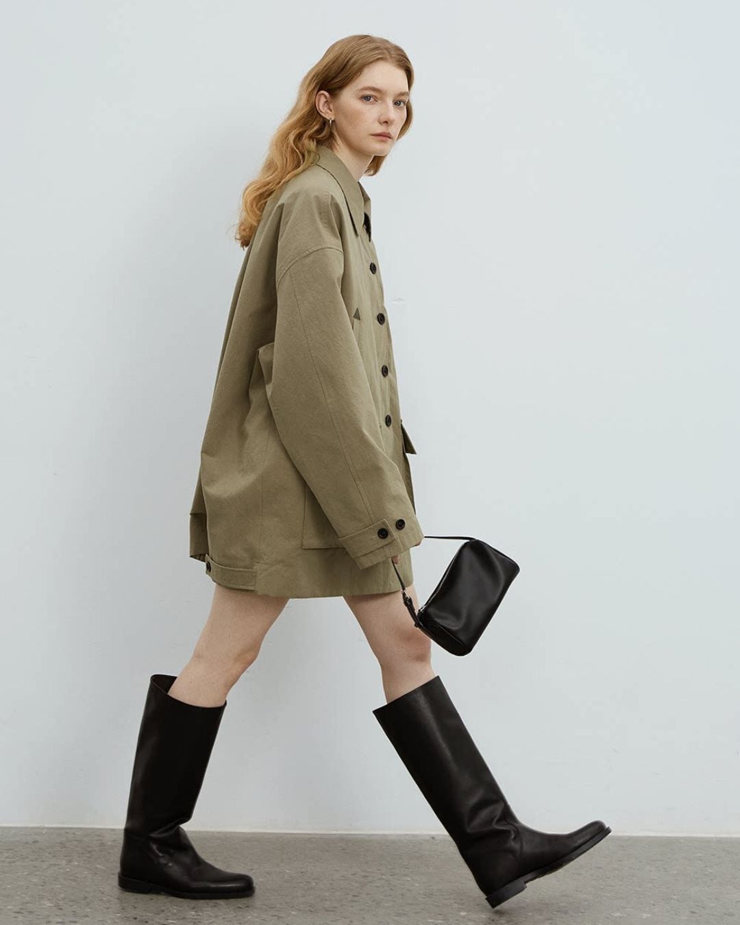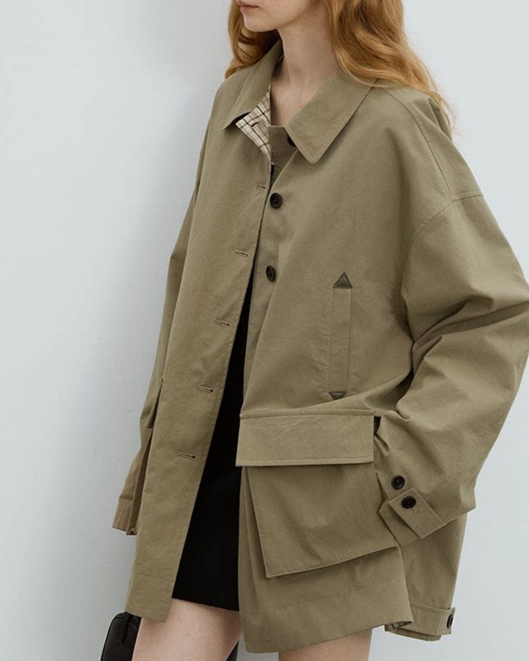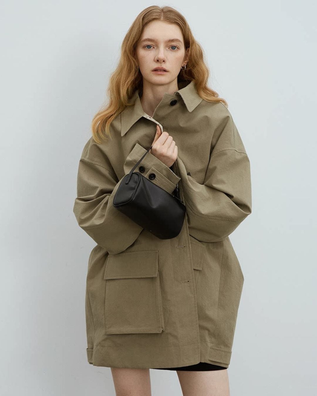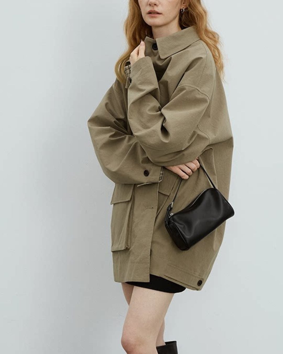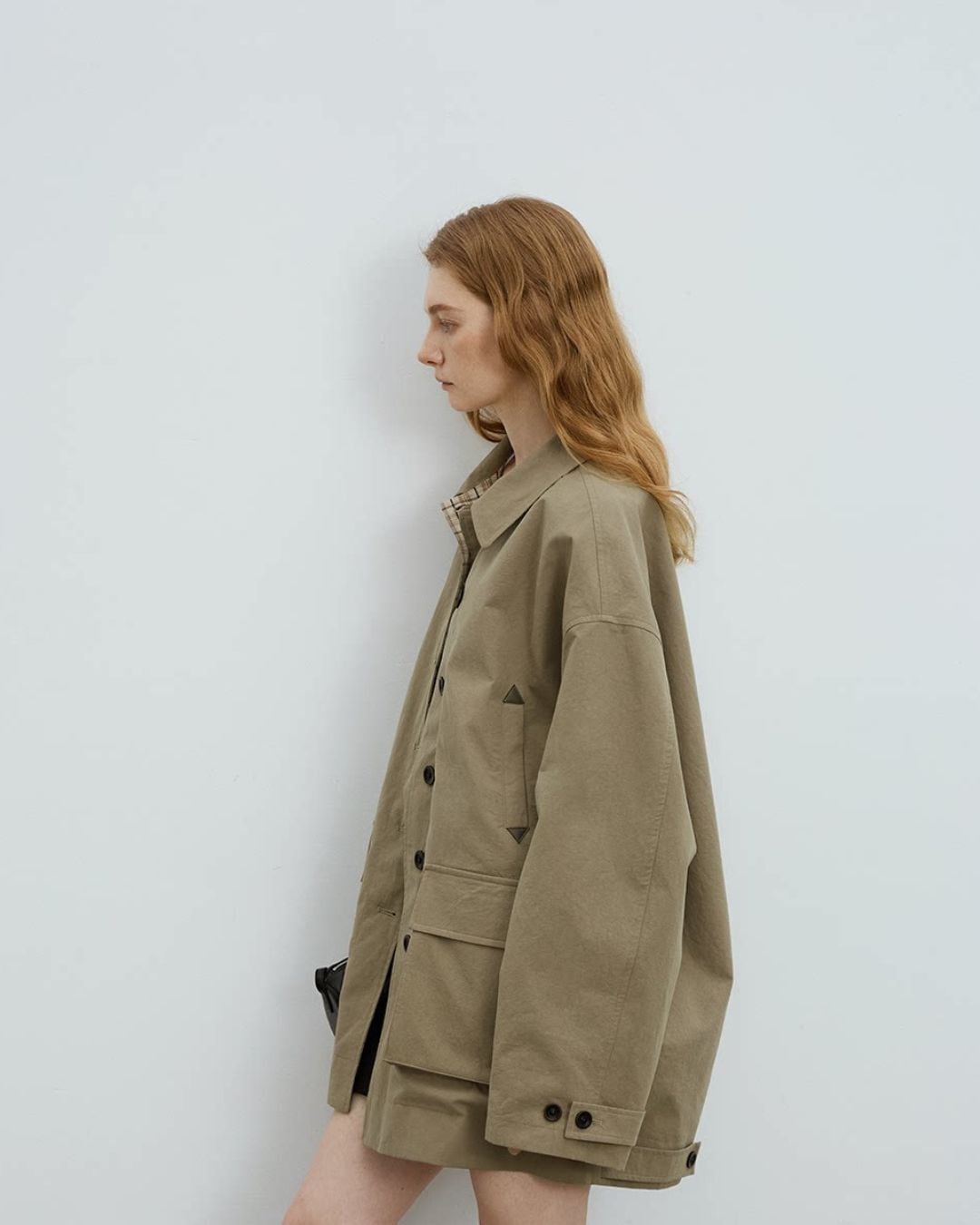 ゆったりとしたシルエットで仕立てた、オーバーハーフコート。