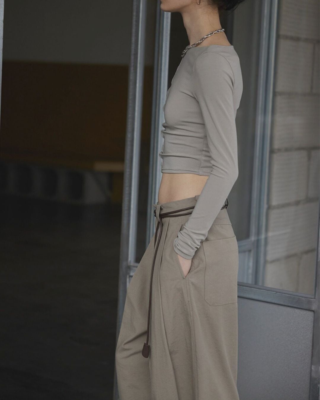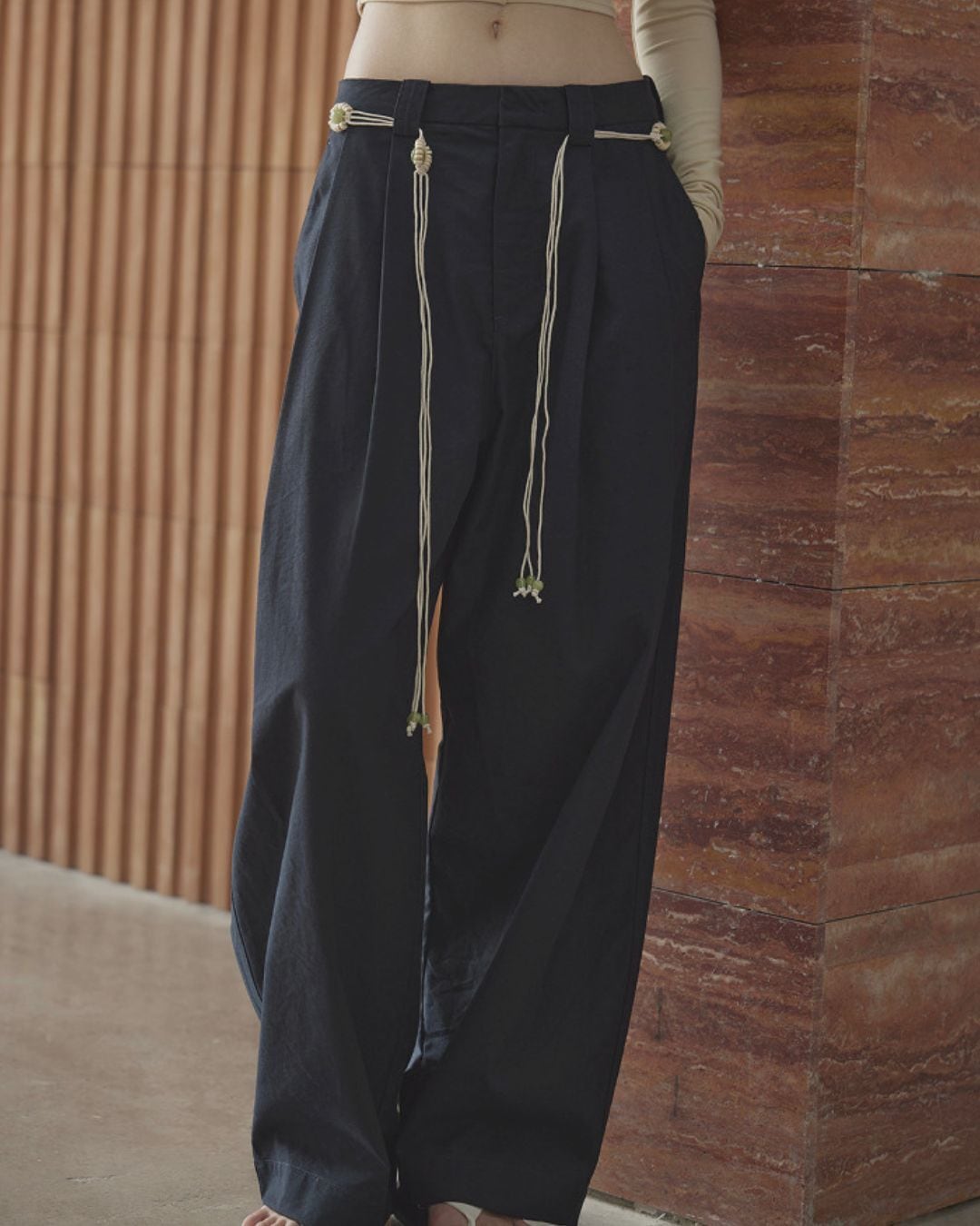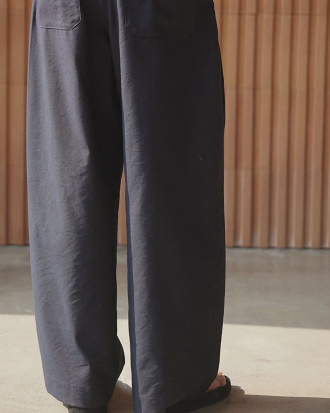 ゆとりのある筒幅と落ち感のあるラインが、縦のバランスを強調し、洗練された印象に導きます。