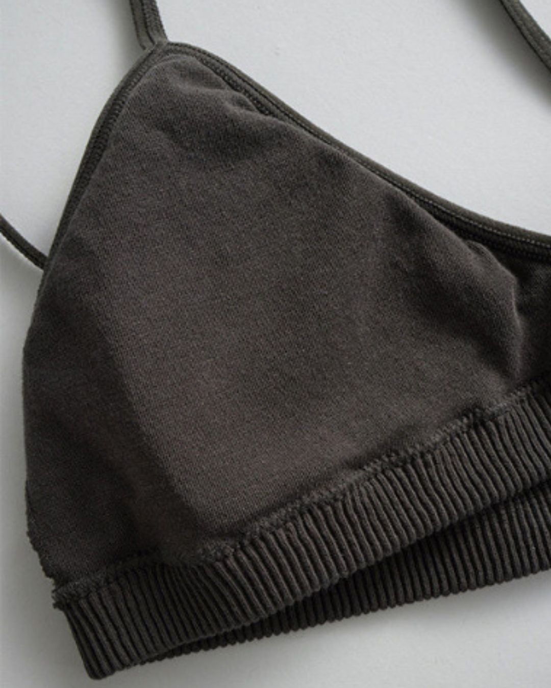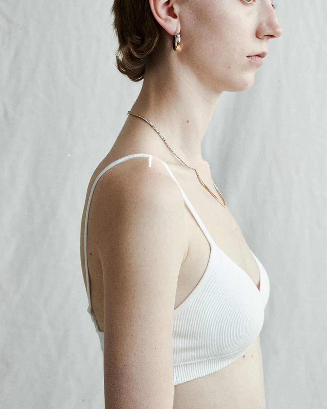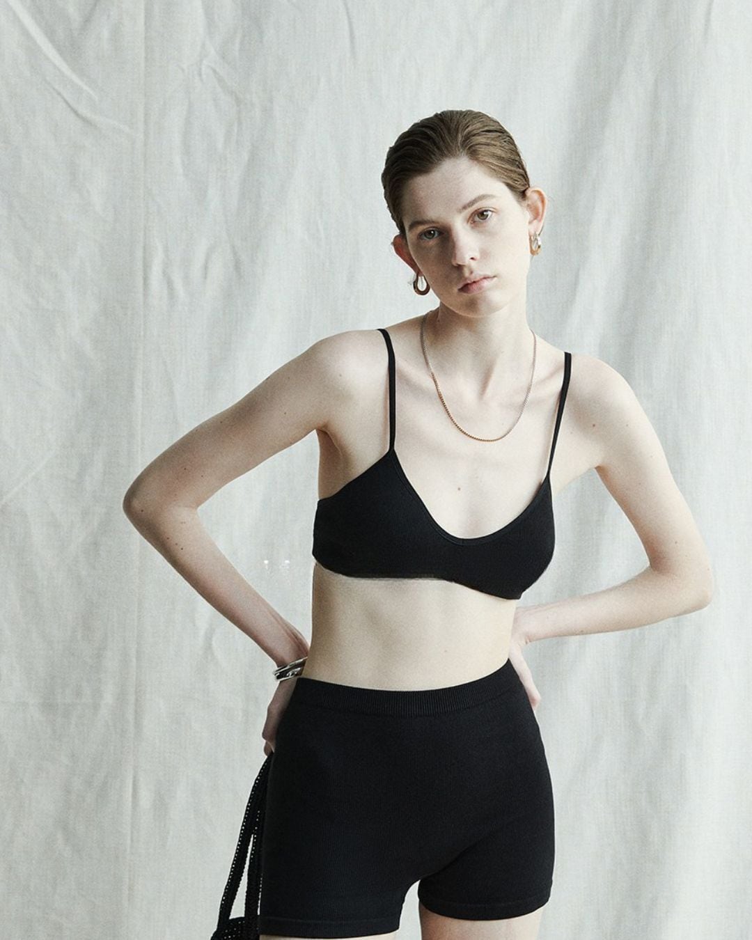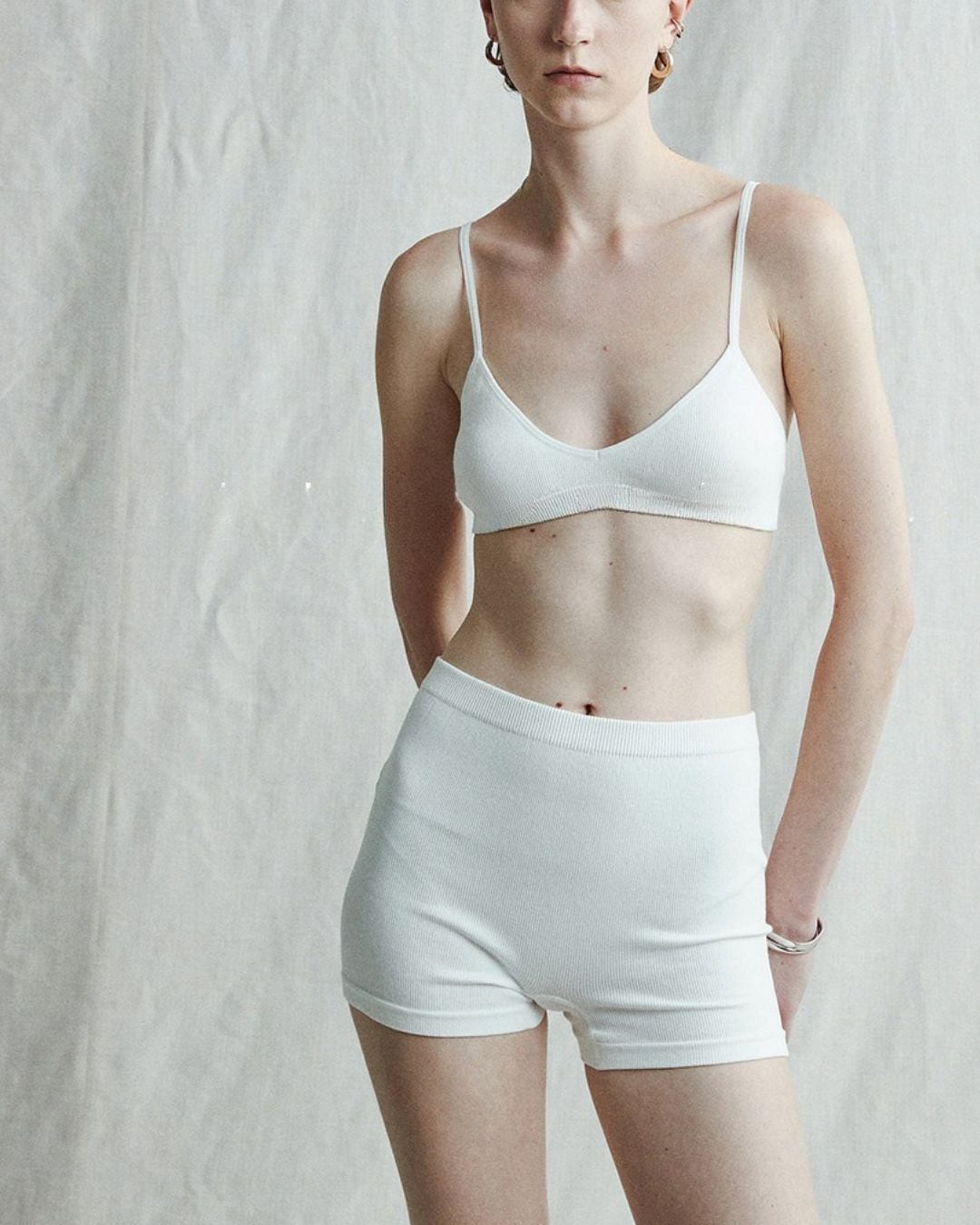 ミニマルなデザインに仕上げたブラレットとニットショーツのセットアイテム。