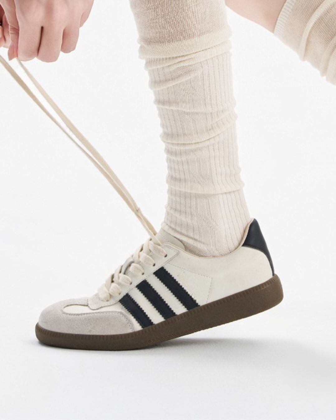 ラシックなジャーマントレーナーをベースに、日常のスタイリングに取り入れやすいミニマルなデザインへと仕上げた一足。