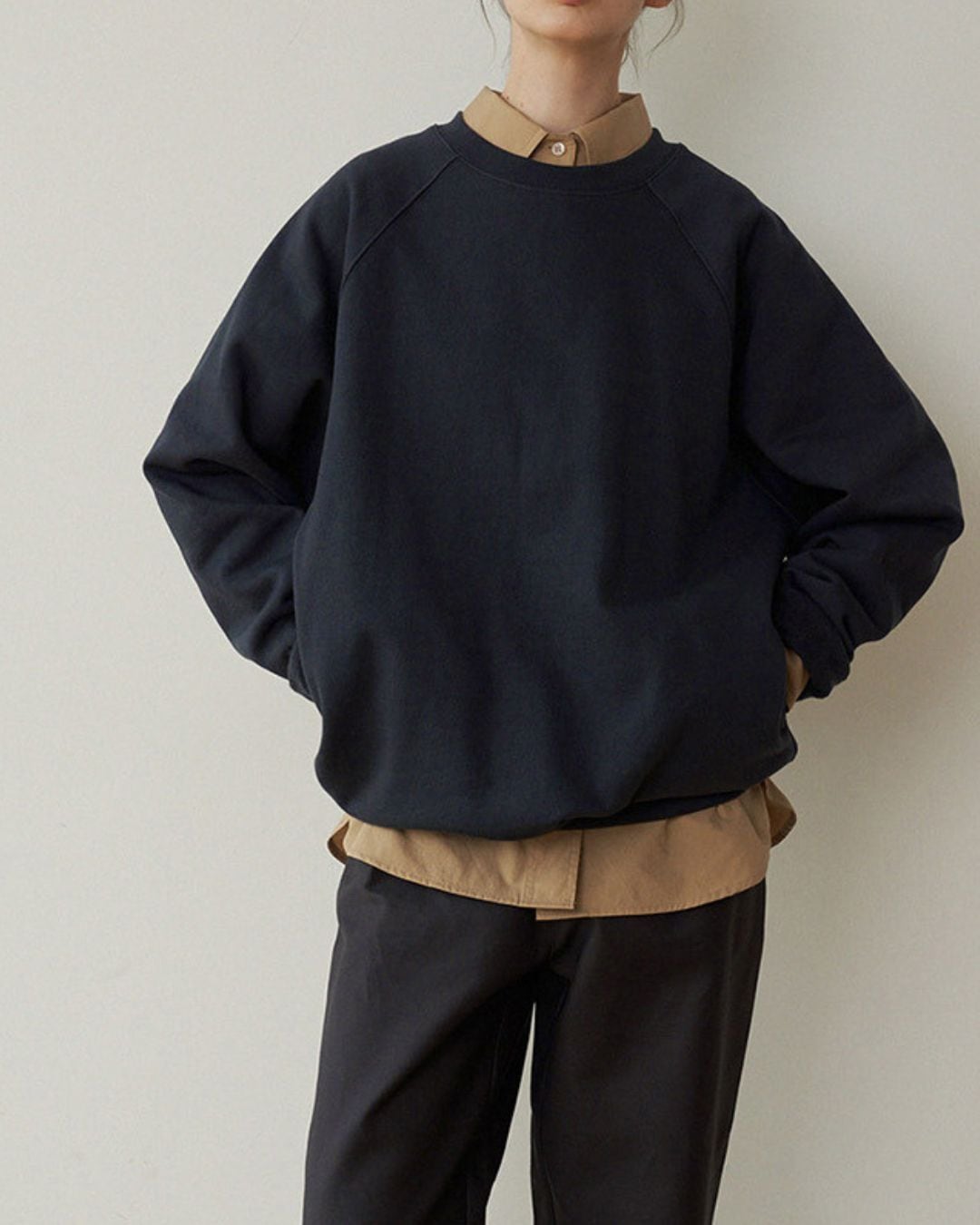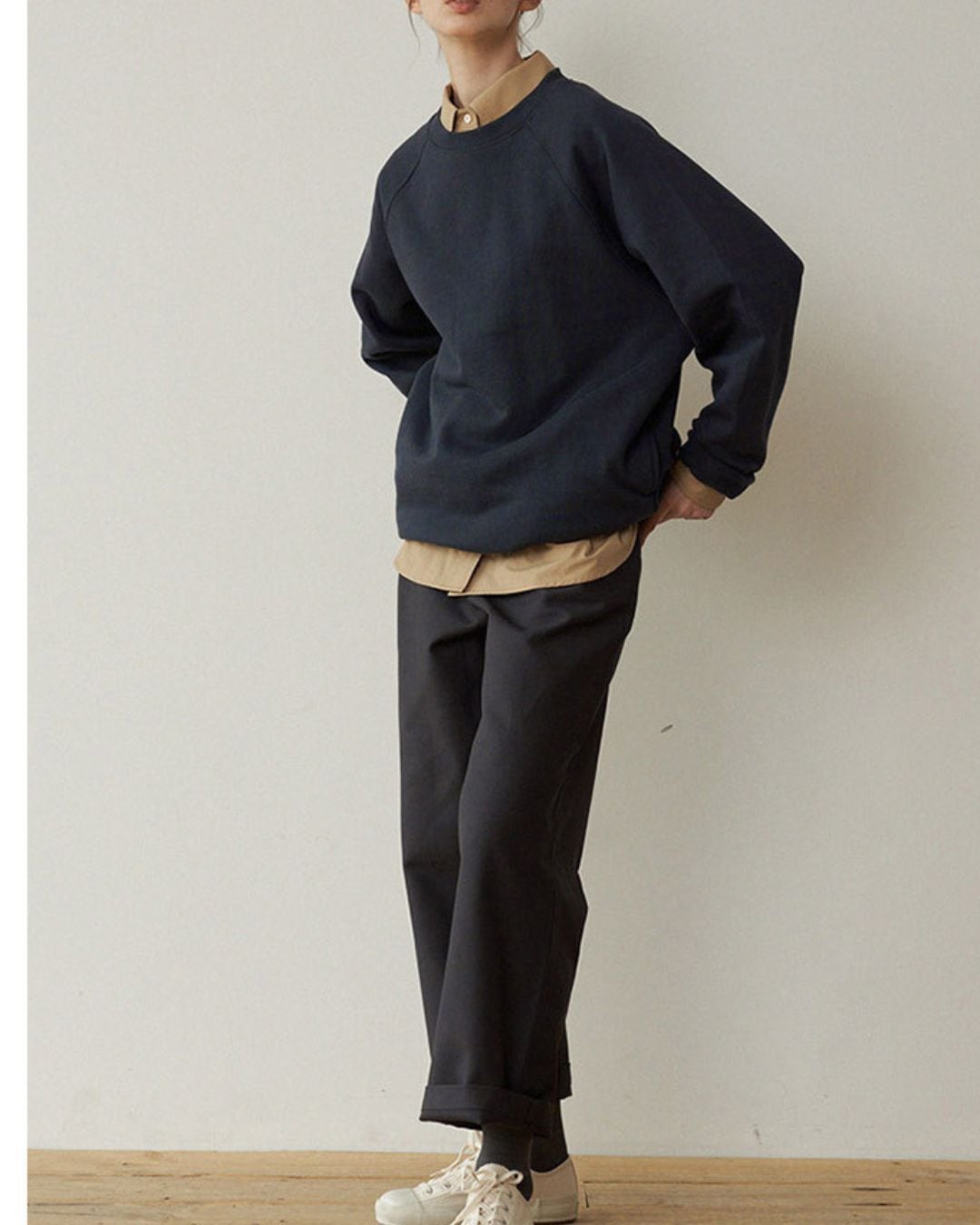 程よくゆとりを持たせたラグランスリーブ仕様のスウェットプルオーバー。