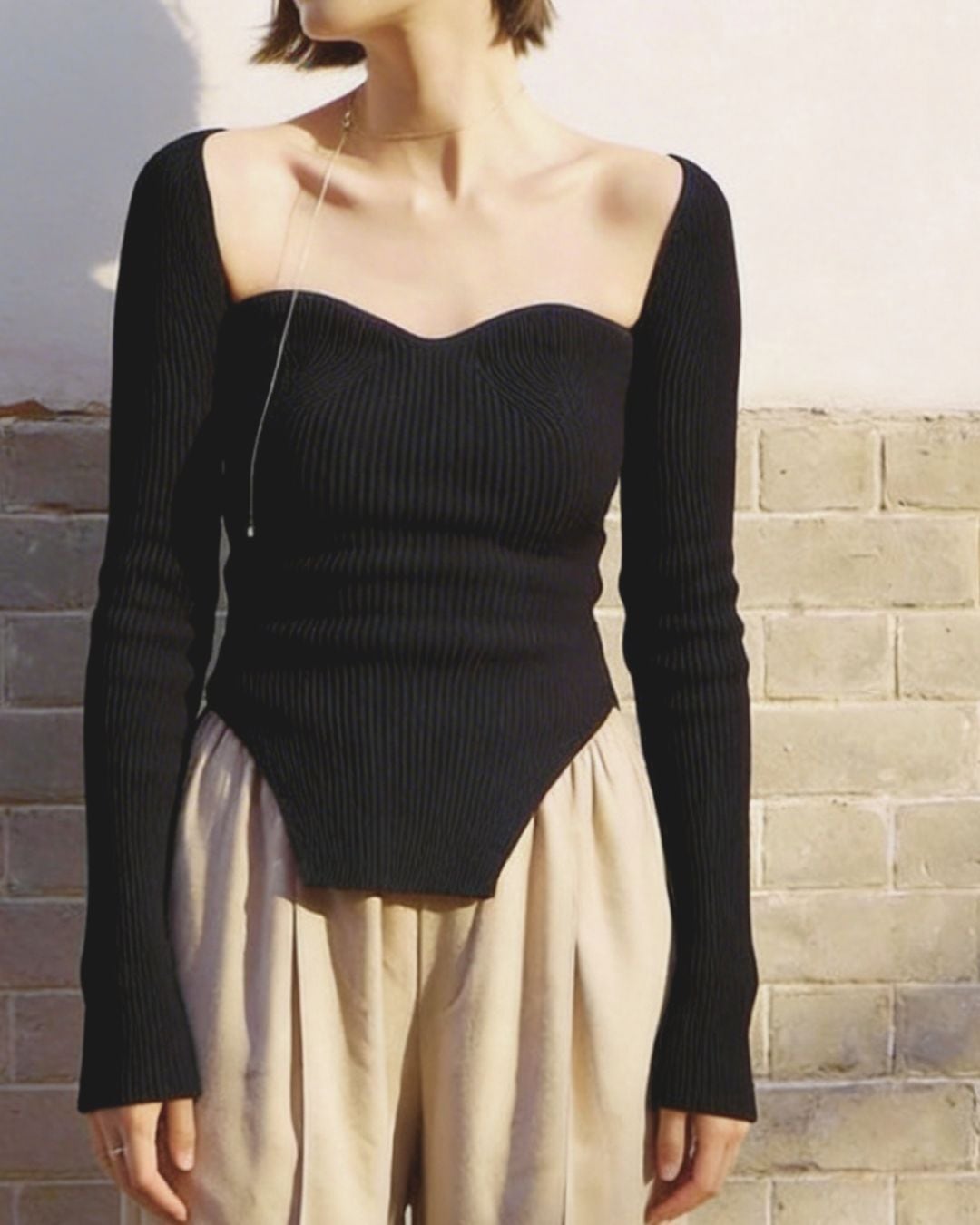 Sweetheart Neck Rib Knit Tops